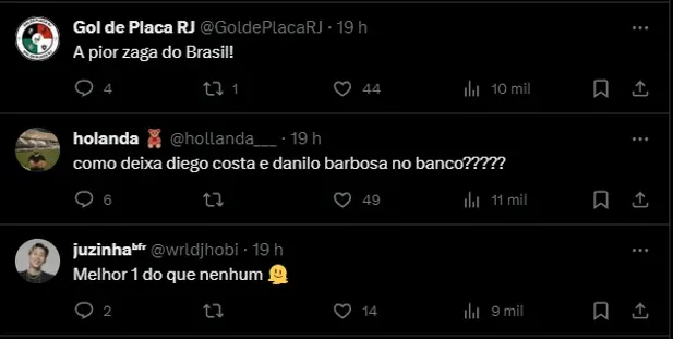 Apesar da sequência de cinco jogos sem balançar as redes, Tiquinho Soares deve permanecer no time titular do Botafogo. Diego Costa, opção no banco de reserva, atuou cerca de 30 min na última rodada.