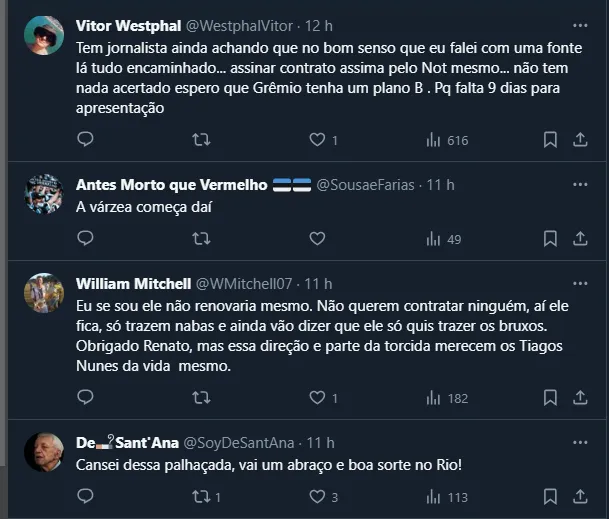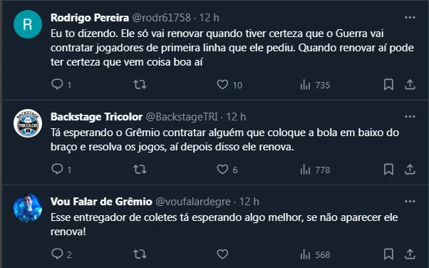 Sendo assim, por mais que a feição e o gestual do comandante tenham deixado praticamente explícito o acerto entre as partes, o assunto caiu como uma bomba nos gremistas e dividiu opiniões.