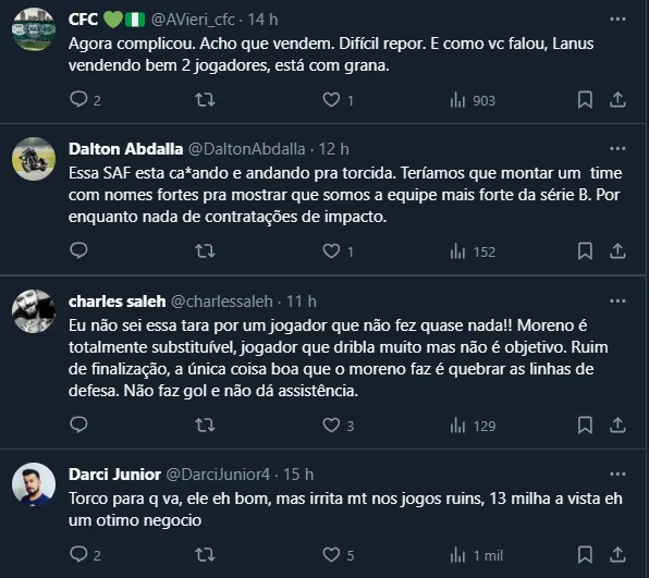 Torcedores do Coxa falam sobre Moreno
