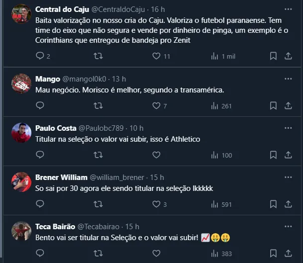 Comentários sobre Bento na torcida do CAP