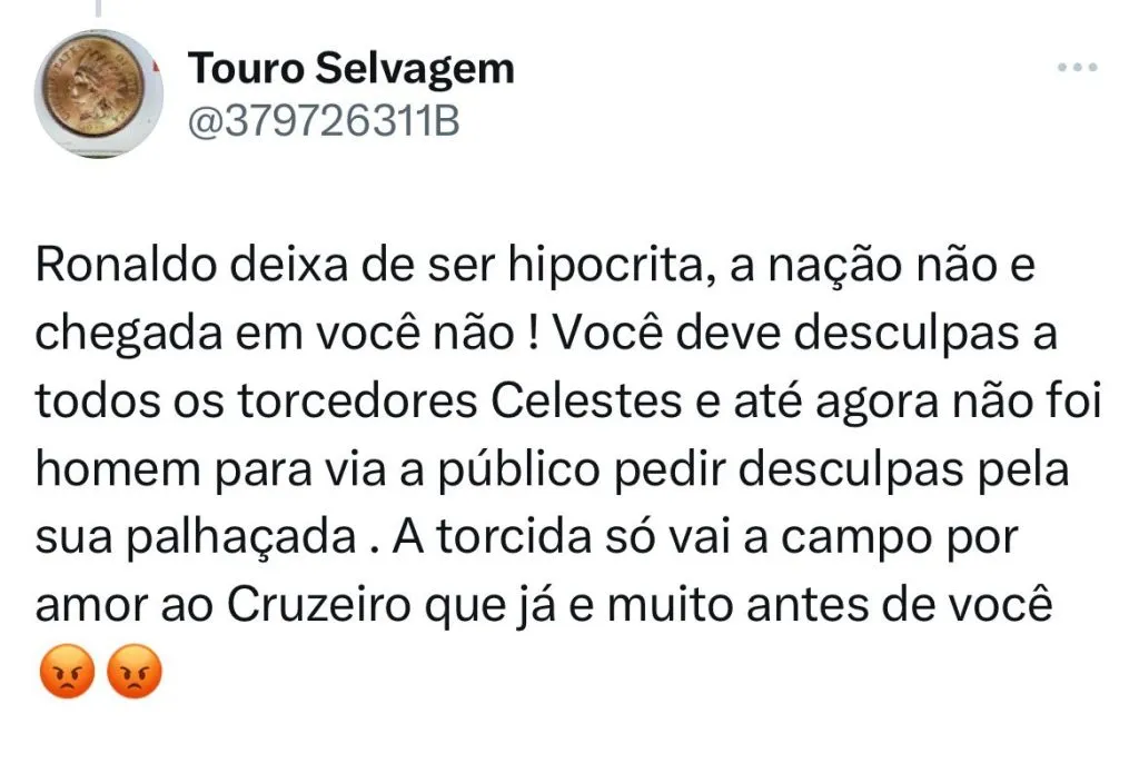 Durante a coletiva desta terça-feira (24), o treinador saiu em defesa de Ronaldo Fenômeno, que vem sendo bastante criticado pelo Torcedor da Raposa em todo país. Na visão do comandante, o dirigente sofre igual ou até mais que um torcedor.