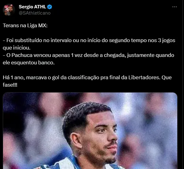Vale destacar que há um ano, Terans marcava o gol que classificava o Furacão para a final da Libertadores, vencida pelo Flamengo por 1 a 0. O meia deixou o Athletico em julho deste ano por 3 milhões de dólares (R$ 14,4 milhões na cotação da época) mais um valor em metas que podem chegar a R$ 18 milhões, dependendo do desempenho dele no México.