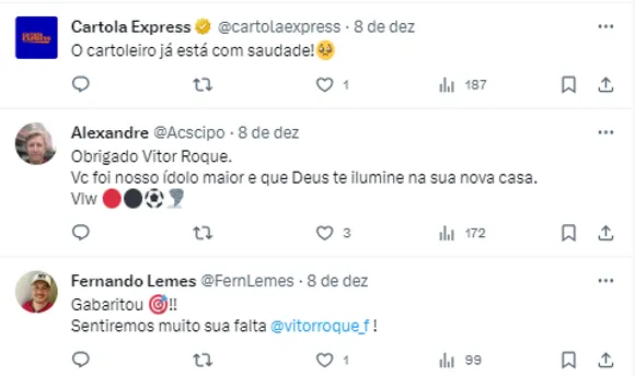 (…) Com o apoio da torcida e todos gritando o meu nome. Feliz pelo legado que deixei no Furacão. Cheguei um menino cheio de insegurança e de medo. Eu era tímido nos treinos, mas aprendi muito com meus companheiros e evolui tanto no físico quando no mentalmente e na parte técnica.