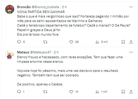 O Fortaleza agora volta o foco para o próximo duelo, quando enfrenta o líder Palmeiras, pela 35ª rodada do Campeonato Brasileiro. A partida acontece na Arena Castelão, às 18h30 (horário de Brasília).