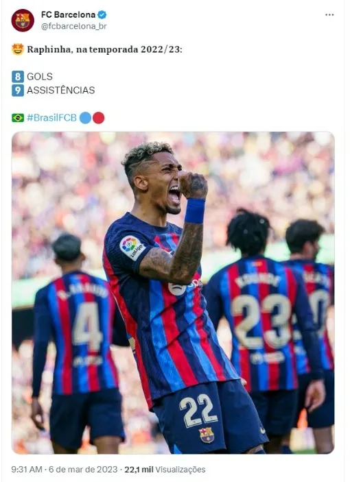 No Barça, o atleta brasileiro vive altos e baixos, no entanto, com o esquema de Xavi, ao que tudo indica, Raphinha conseguiu se firmar. Na primeira temporada, o ponta disputou posição com Dembelé, com a concorrência bastante acirrada, o atleta acabou atuando também fora de sua posição em algumas partidas.