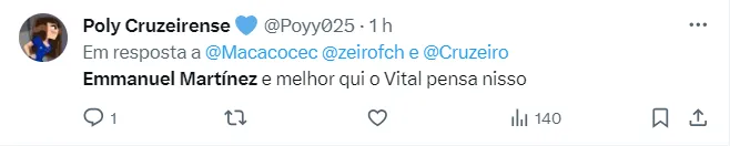 Segundo a reportagem do Tempo Sports, ela ainda tentou contato com o Cruzeiro para saber mais informações sobre a negociação, porém, o clube informou que “não comenta as especulações do mercado”.