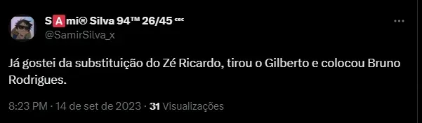 “Já gostei da substituição do Zé Ricardo, tirou o Gilberto e colocou Bruno Rodrigues”