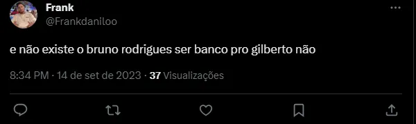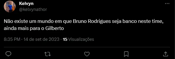 “Não existe um mundo em que Bruno Rodrigues seja banco neste time, ainda mais para o Gilberto”