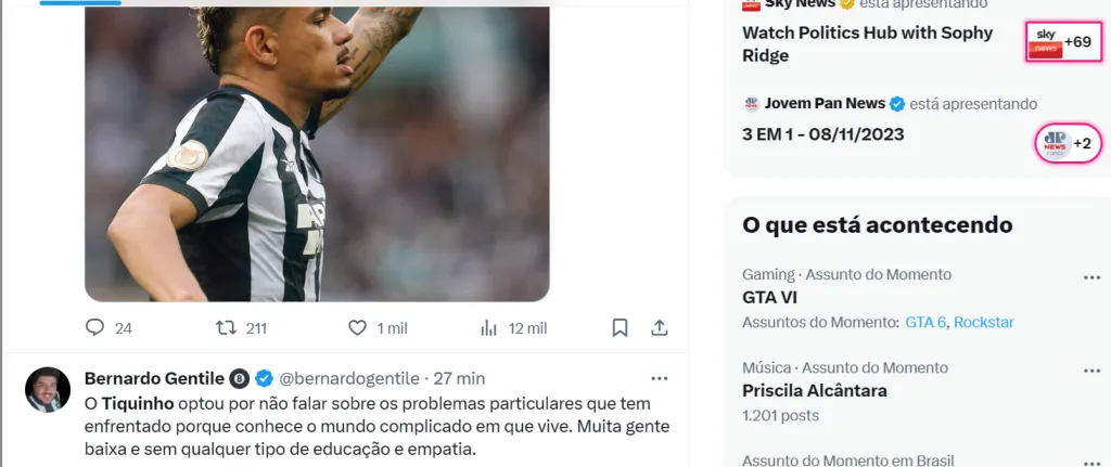 O Botafogo espera contar com Tiquinho para o jogo diante do Bragantino no fim de semana, mas o camisa 9 não foi visto nas fotos oficiais do Clube nos treinos de hoje e da última terça (7).