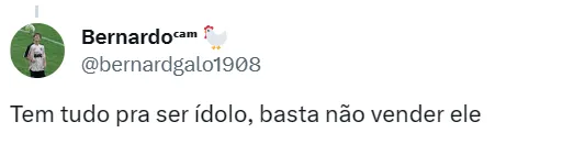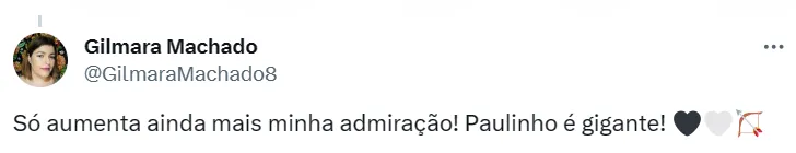 “Ninguém está pensando aqui em perder Paulinho. Temos ótima relação com o agente do atleta (Carlos Leite), com o atleta, que está feliz com sua família. Teve um ano espetacular. Esperamos contar com ele para a Libertadores, também. Com esse cartão de visitas, acho que o clube vai avaliar uma proposta que seja realmente irrecusável e o tanto quanto ele vale”, completou.