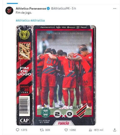 Agora, o Furacão se recupera para o próximo jogo no domingo (8), a equipe recebe o Bragantino às 18h30 (horário de Brasília) na Arena Ligga, pela 26ª rodada do Campeonato Brasileiro. O Athletico tem a semana livre para se preparar para o confronto. No momento, o clube paranaense ocupa a 8ª colocação com 40 pontos somados.
