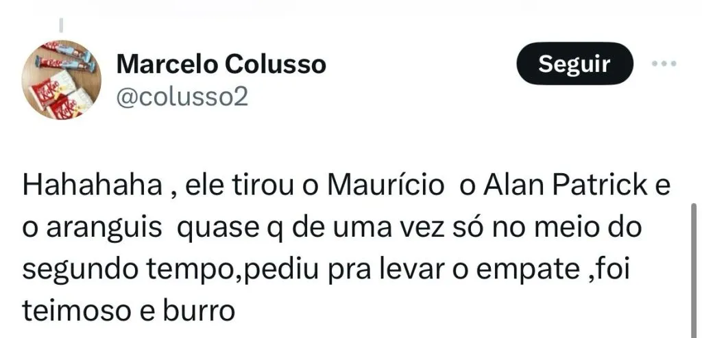 Coudet destaca a importância de Alan Patrick e +1 titular