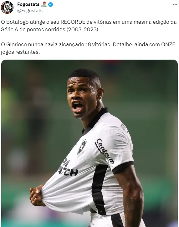 O “problema”, porém, está na quantidade de pontos conquistados. Somando apenas um dos três pontos possíveis, a projeção para o final da temporada leva o Botafogo a uma somatória máxima de 89 pontos. Embora a quantia ainda seja bastante significativa, ela é um ponto menor que a campanha de 90 pontos conquistada pelo Flamengo em 2019, recorde na história dos pontos corridos da competição.