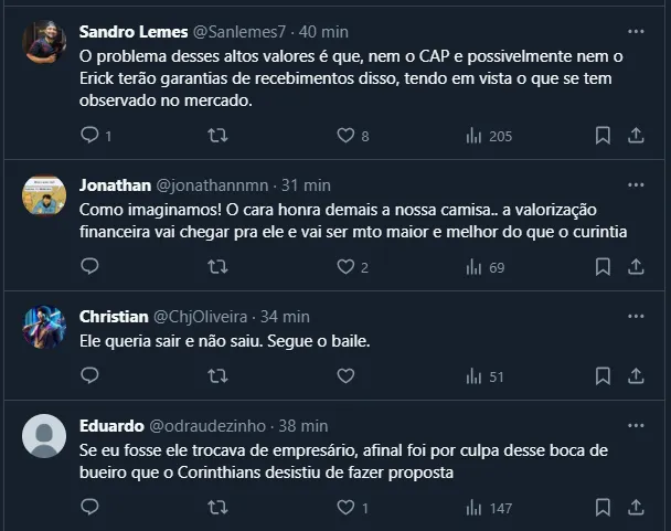 Erick “quebra o silêncio” sobre o Corinthians
