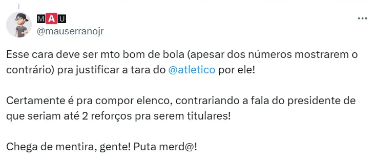 Apesar do desejo da torcida, a diretoria atleticana não indica uma troca de comando no momento e irá avaliar a sequência da temporada, sendo a fase mata-mata do Estadual um grande ‘teste’ para o treinador.
