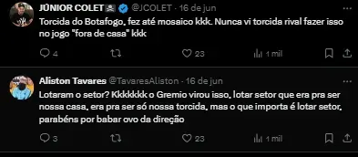 “O mando de campo era do Grêmio, mas 90% da torcida era do Botafogo. Foi como jogar fora. São mais de 30 dias longe de casa, longe do nosso torcedor é difícil. Já adianto que o primeiro turno será difícil. Peço paciência ao torcedor”, criticou o treinador do Imortal Renato Gaúcho.