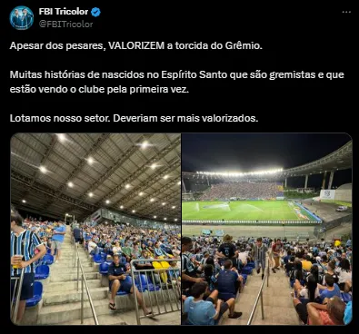 A derrota para o Botafogo fez com que o Grêmio entrasse na zona de rebaixamento do Brasileirão Série A. A situação da equipe vem se complicando e já tem torcedor preocupado com o momento do time.
