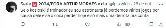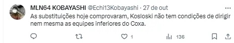 Com o momento ruim, o técnico Thiago Kosloski foi sincero sobre ao dizer sobre seu futuro no cargo à frente da equipe. Ele disse não temer e que está tranquilo em relação à isso.
