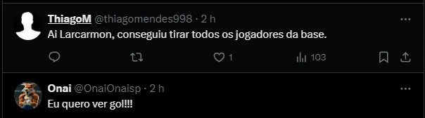 O treinador ainda possui alguns atletas no departamento médico, incluindo Gabriel Veron, que segue em fase final de recuperação. A princípio, segundo o GE, o atacante deve retornar em abril.