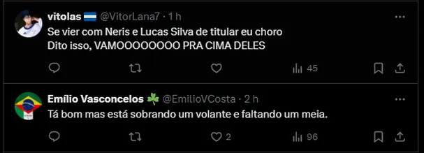 Na semifinal, Zé Ivaldo e Marlon foram desfalques, cumpriram suspensão. Dessa maneira, ambos estão à disposição e também entre os convocados. A princípio, o lateral-esquerdo deve ser titular.