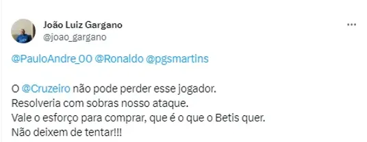 Na rede X (antigo Twitter), alguns torcedores pediram para o Celeste entrar na briga e buscar por Luiz Henrique, jogador que atualmente está no Real Betis na Espanha.