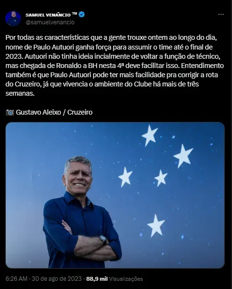 Tanto Pezzolano quanto Pepa não fazem mais parte do comando das respectivas equipes do domínio de Ronaldo. Agora, o ex-atacante espera anunciar o nome do novo treinador do Cruzeiro ainda esta semana, já que cada minuto é essencial para a Raposa na disputa do Brasileiro.