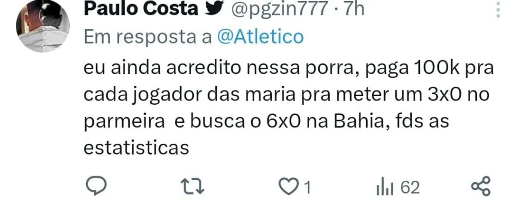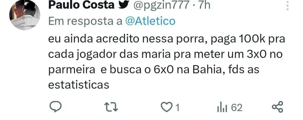 Everson também reconheceu que as chances de o Galo conquistar o título do Brasileirão são poucas. “Hoje, na última rodada, ainda temos esperança de título, mas sabemos que é remota. No entanto, vamos trabalhar para nos mantermos no G4.”, finalizou o goleiro.