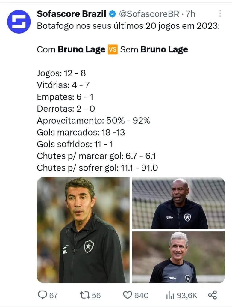 Segundo o diretor de futebol do Botafogo, André Mazzuco, o Clube não esperava que Bruno Lage tomasse tal atitude. “Até nos pegou de surpresa. Conversando depois com ele, ele não soube se expressar. Foi muito mais um desabafo da parte dele. Ele entende a responsabilidade que tem, como a gente tem. Para ele, também é difícil chegar a um ambiente que está funcionando. E a gente sabia que haveria oscilações, uma derrota, enfim, isso ia acontecer”, disse o dirigente em entrevista ao GE.