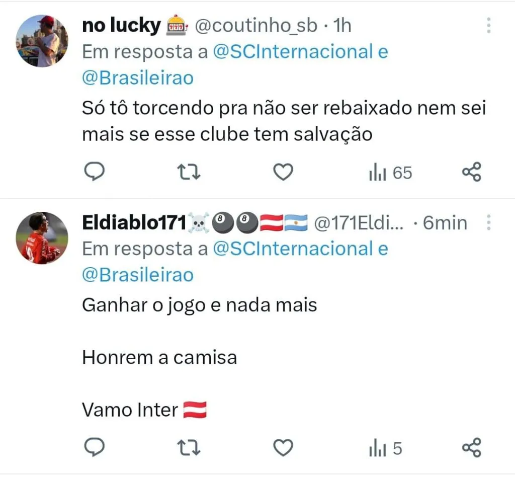Além de tentar garantir a vaga na Sul-Americana, o Inter não pode esquecer que também briga contra o rebaixamento. Isso porque atualmente ocupa a 12ª colocação com 46 pontos, cinco a mais que o Bahia que ainda não entrou em campo para esta rodada e ainda tem nove pontos em disputa.