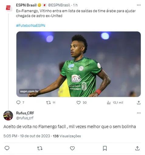 A passagem de Vitinho pelo futebol brasileiro até hoje rende muitos comentários entre torcedores de diferentes times. Colorados e botafoguenses costumam elogiar bastante o futebol do atleta, que chegou a defender o CSKA de Moscou na Europa antes de ser contratado pelo Flamengo. Porém, foi no Rubro-Negro do Rio em que o atleta conquistou os maiores títulos da carreira e atingiu a audiência dos milionários árabes. O que vinha sendo confortável para o jogador, porém, pode estar perto de acabar.