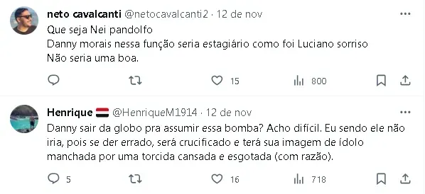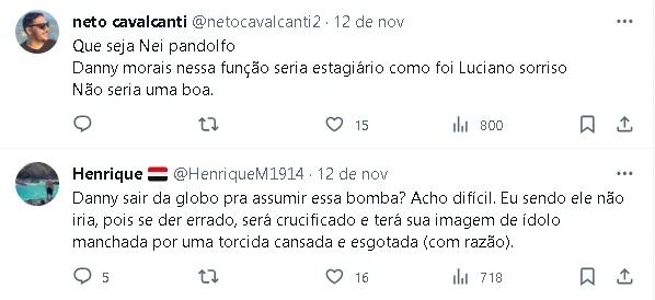 O dirigente, que planeja anunciar a composição completa do novo departamento de futebol até a próxima segunda-feira, compartilhou suas impressões sobre o ex-capitão: “Danny é um grande ídolo do Santa Cruz, já fez muito pelo clube, e seria (ou será) um grande nome, a gente tem conversas“.