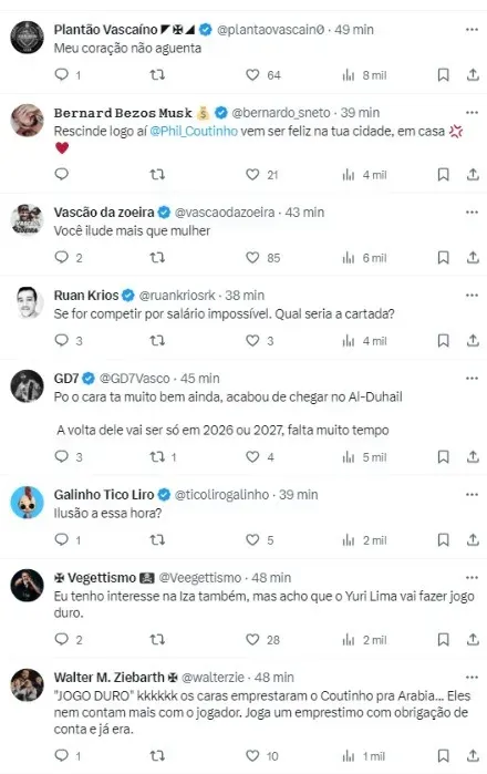 Quem surge como possibilidade é Philippe Coutinho, atualmente no Al-Duhail. De acordo com o portal Sport, a operação ainda está em fase embrionária e, por ora, não há sinalização se um retorno ao Brasil agora seria de sua vontade.