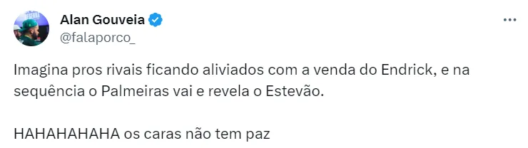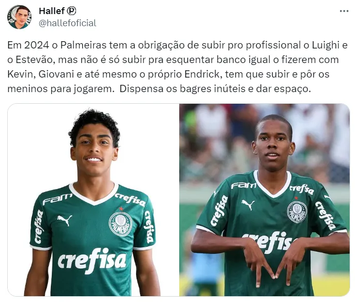 Amigo de Endrick, a situação do jovem meia é tratada de maneira semelhante à que o Verdão adotou para o camisa 9, pensando nas melhores condições para o Palmeiras e o atleta no futuro.