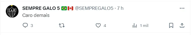 O comunicador ainda destacou que outras equipes que estavam interessadas na contratação do craque, como: Flamengo, Palmeiras e Fluminense, não pensa em oficializar nenhuma proposta. Diante disso, o caminho fica livre para o Galo acertar a contratação.