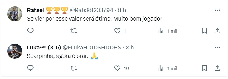 Como é o caso de Savinho, que pode engordar o cofre alvinegro e dar maior autonomia à equipe no mercado. Diante disso, o Atlético deve ir firme para buscar a contratação de Gustavo Scarpa para a próxima temporada.