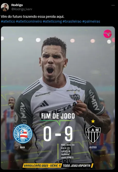 Na última partida do Brasileirão, o Atlético enfrentará o Bahia, enquanto o Palmeiras terá um duelo fora de casa contra o Cruzeiro. Para conquistar o título, o Galo precisará vencer o Bahia e torcer para que o Cruzeiro derrote o Palmeiras.