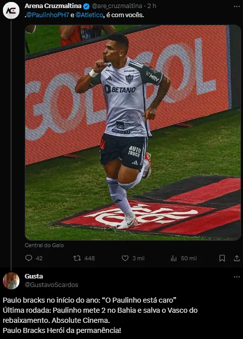 © Thiago Ribeiro/AGIFPaulinho jogador do Atletico-MG comemora seu gol durante partida contra o Flamengo no estadio Maracana pelo campeonato Brasileiro A 2023. Thiago Ribeiro/AGIF