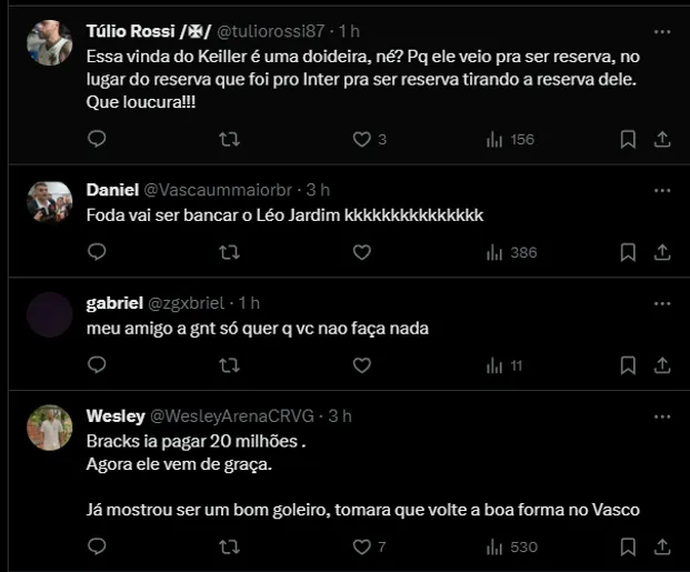 Os comentários dos torcedores