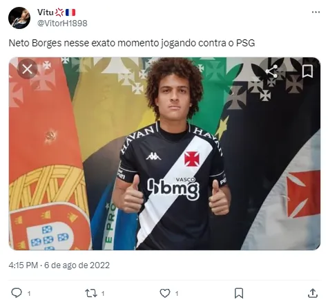 Agora Neto Borges terá a oportunidade de enfrentar o PSG novamente neste sábado (30) pela Ligue 1. O time do defensor é o atual lanterna da competição e acumula um ponto em seis partidas disputadas. A bola rola a partir de 12h, com transmissão da ESPN 2 no Brasil e os torcedores do Vasco podem acompanhar o velho conhecido da torcida cruz-maltina. Mesmo longe do Gigante, o brazuca segue no olhar dos apaixonados pelo Clube.