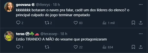 Isso porque, diante do Corinthians, o Palmeiras sofreu o empate no fim da partida e deixou de vencer uma partida que estava “ganha”. Não à toa, os torcedores lamentaram e muito o resultado na Arena Barueri.
