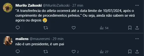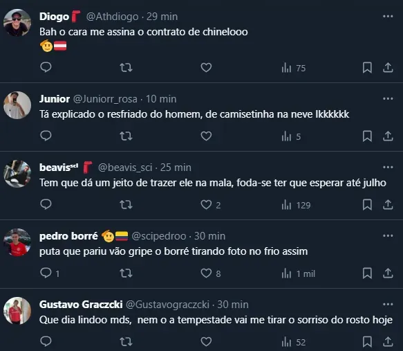 Posto isso, por mais que ainda não tenha uma data exata para desembarcar em Porto Alegre, o anúncio agradou muito a torcida do Inter. Não à toa, os torcedores trataram de exaltar o presidente nas redes sociais.