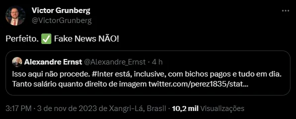 Nas redes sociais, o Vice-Presidente de Administração e de Patrimônio do clube, Victor Grunberg, se manifestou chamando de “Fake News” as notícias que davam conta de um possível atraso.