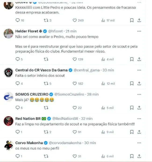 “Pedro Martins não seguirá como Diretor Executivo de Futebol do Vasco da Gama. Em comum acordo entre as partes, nos próximos dias será realizada a transição da gestão e planejamento do Departamento de Futebol para o novo executivo da instituição“, comunicou o clube.