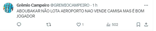 O profissional informou que o Imortal realizou uma proposta para tê-lo no elenco de Renato Portaluppi: “O Grêmio se interessou por Aboubakar. O clube (Besiktas) está avaliando a oferta”, afirmou ele em participação em programa da emissora citada.