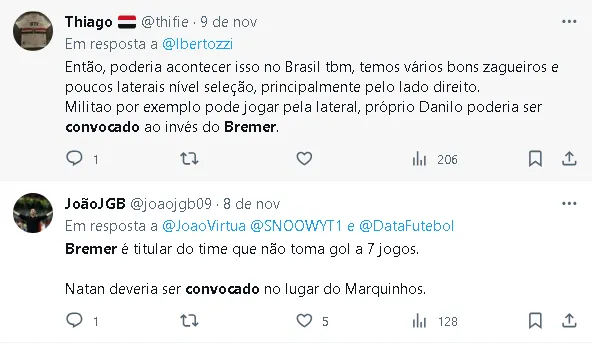 No entanto, os laterais chamados por Diniz para os jogos da Seleção foram Emerson Royal, Carlos Augusto e Renan Lodi.