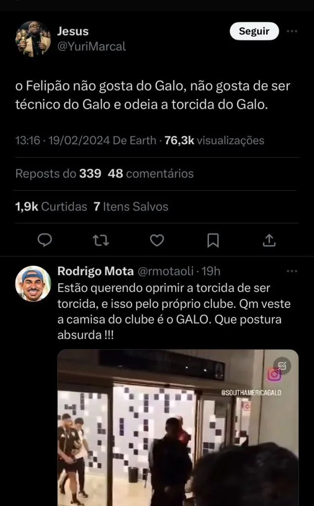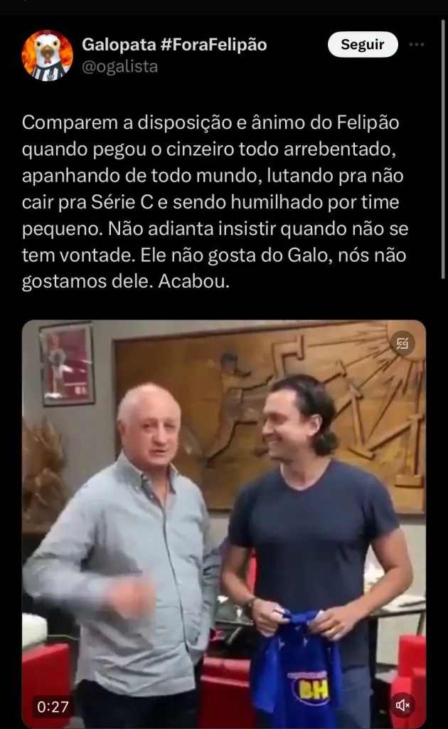 Obviamente, dados aos fatos, com o possível xingamento de Felipão (o vídeo estará abaixo), a torcida do Atlético achou total desrespeito do treinador, que agiu de forma destemperada na visão de alguns. O Clube já deixou claro que não vai se pronunciar.