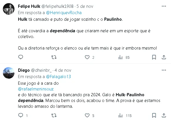 No entanto, vale ressaltar que o sucesso de Paulinho não elimina a importância de Hulk no Atlético-MG. O veterano atacante ainda desempenha um papel crucial na equipe e contribui de maneira significativa para o seu desempenho.