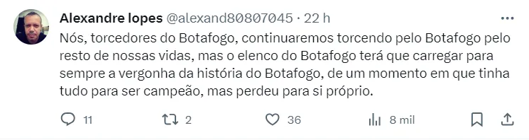 Uma vaga apenas na pré-libertadores também pode significar uma logística mais complicada para o Botafogo. A preparação terá que ser retomada antes, mais jogos e viagens no calendário, além de desgastes físicos dos jogadores.