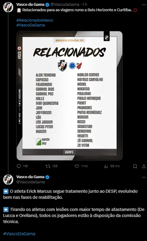 Para evitar a queda para a Série B, o Vasco precisa vencer o Cruzeiro na última rodada da competição. A equipe também precisa torcer para que outros times da zona de rebaixamento não vençam seus jogos.