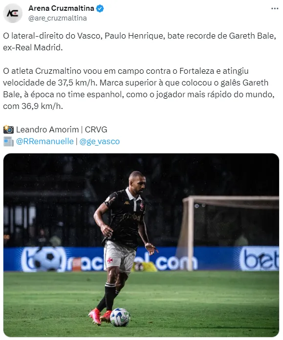 Destaque na vitória por 1 a 0 contra o Fortaleza, foi dos pés de Paulo Henrique que surgiu a jogada para o gol de Payet. Na ocasião, o lateral do Vasco atingiu ainda a incrível velocidade de 37,5 km/h, superando Gareth Bale, que foi considerado o jogador mais rápido do mundo após corrida de 36,9 km/h em 2015. Confiante, Paulo Henrique vai mostrando seu valor e conquistando seu lugar no time.